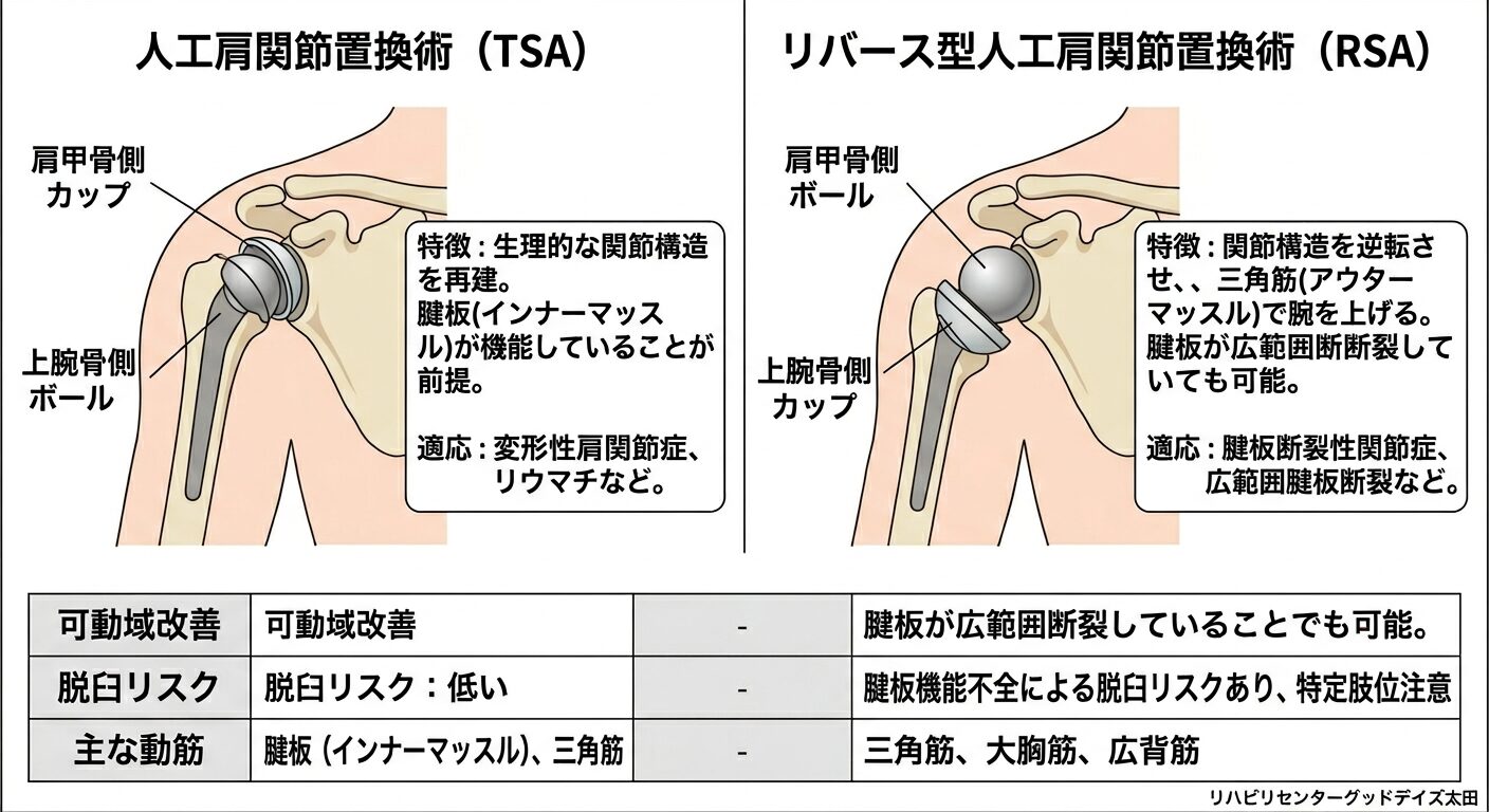 1. 人工肩関節置換術(TSA)とリバース型(RSA)の根本的な違い