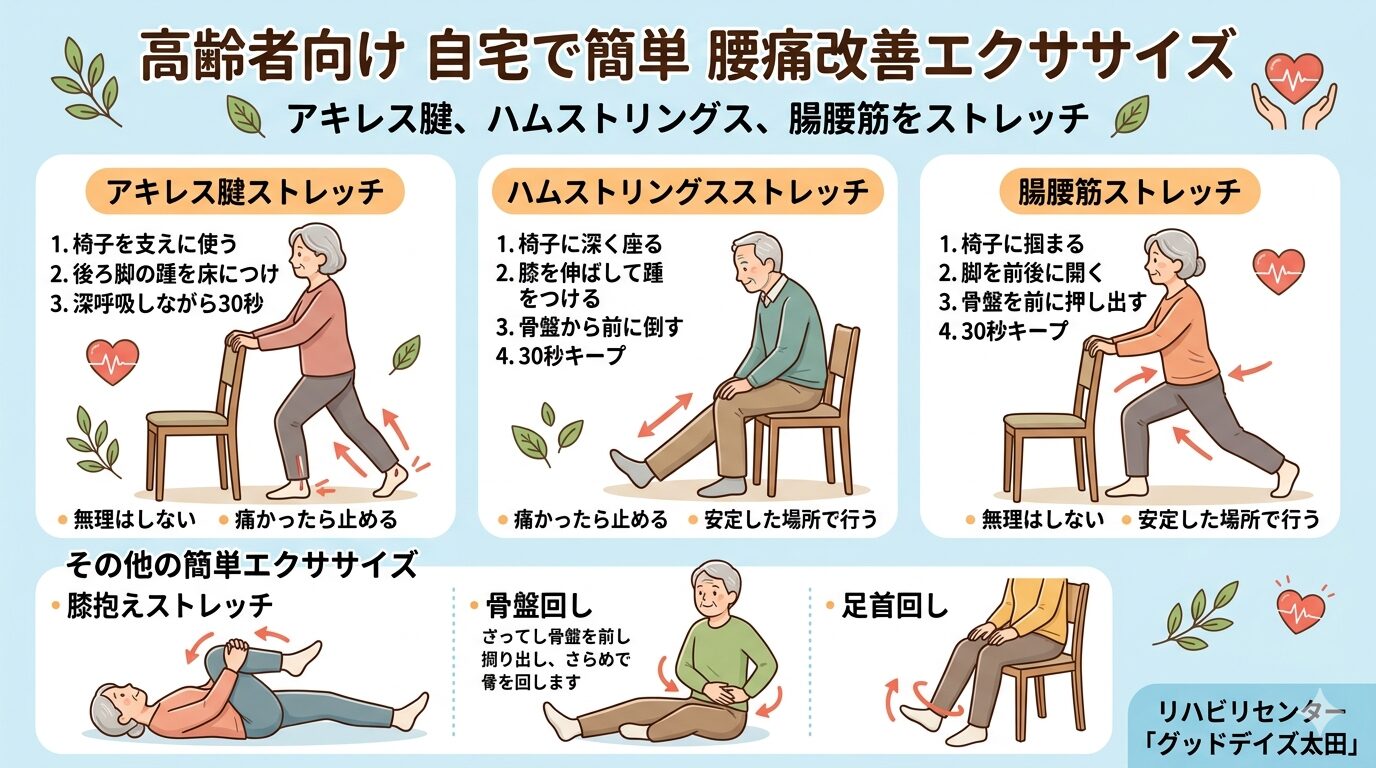 ご高齢の方で上記の運動が難しい方は下記のストレッチを中心にした運動をお勧めします!