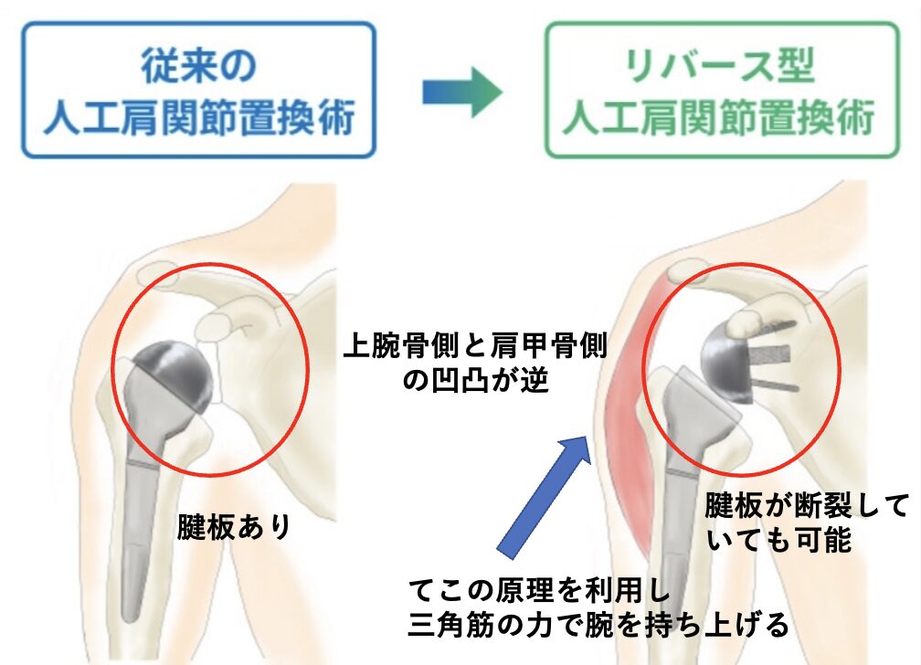| 項目 | 人工肩関節全置換術 (TSA) | リバース型人工肩関節 (RSA) |